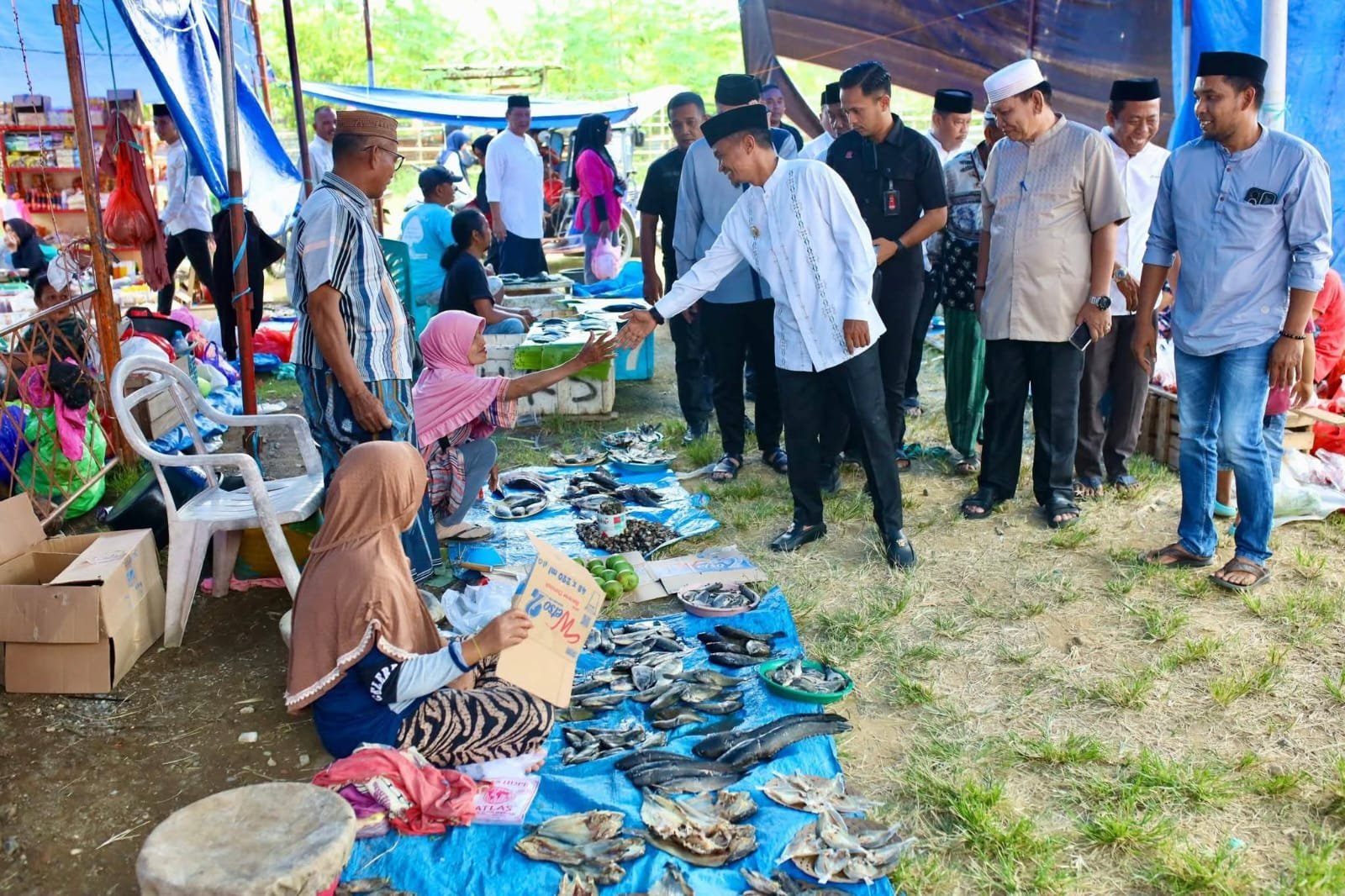 Bupati Bone tampak menyapa para pedagang satu per satu serta menyalami para pedagang termasuk penjual ikan yang tengah menawarkan dagangannya.