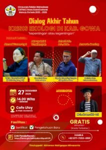 GOWA — Himpunan Pelajar Mahasiswa (HIPMA) Gowa Koordinatorat Manuju menggelar Dialog Akhir Tahun bertajuk “Krisis Ekologi di Kabupaten Gowa: Kepentingan atau Kegentingan”, Sabtu (27/12/2025), di Cafe Uloy, Kabupaten Gowa.