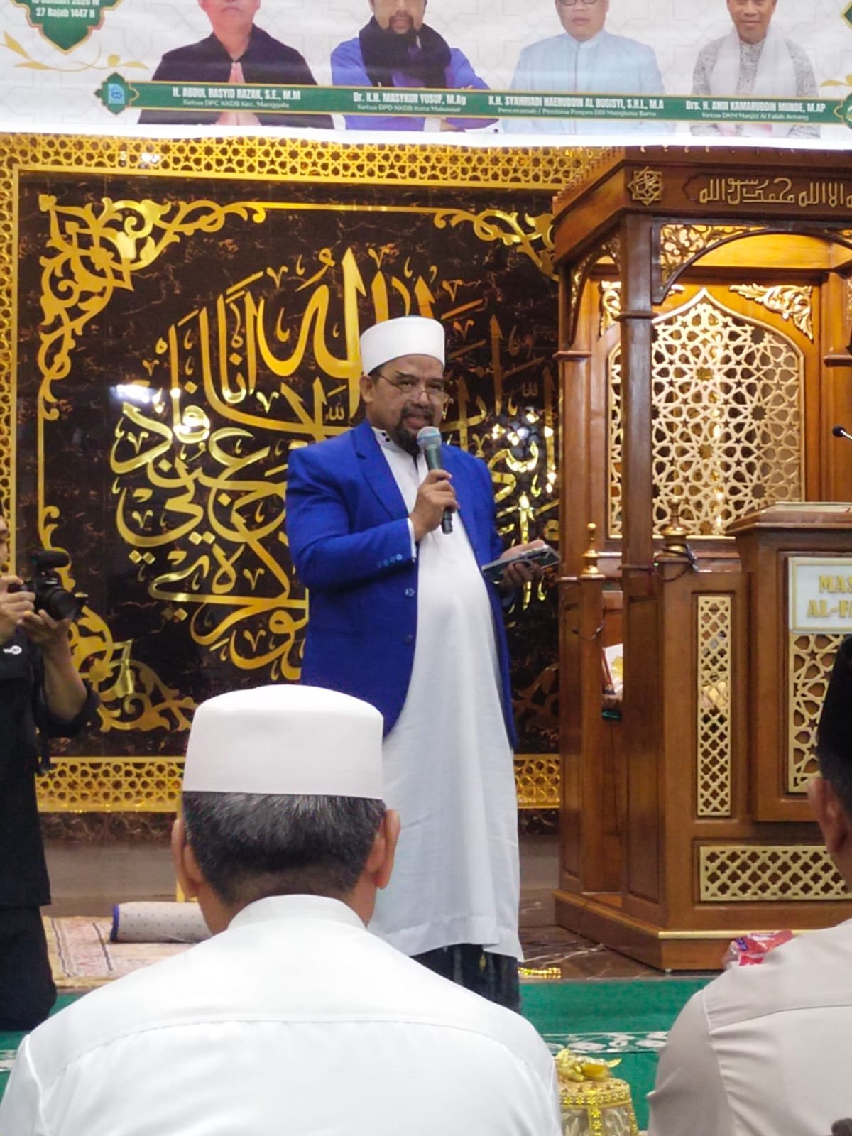 Peringatan Isra Mi’raj berlangsung khidmat dan dihadiri ratusan jamaah. Acara diawali dengan dzikir bersama yang dipimpin Ketua Komite Dakwah Khusus (KDK) MUI Sulawesi Selatan, Dr. KH. Masykur Yusuf, M.Ag. (as)