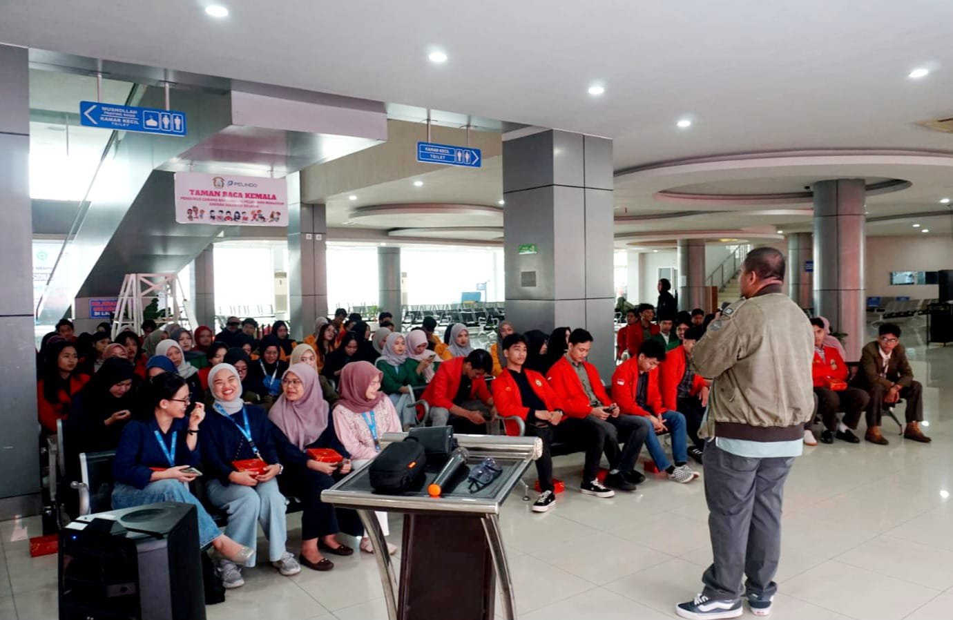 Kegiatan berlangsung hangat dengan antusiasme tinggi dari mahasiswa yang aktif berdiskusi dan menyampaikan pertanyaan seputar operasional pelabuhan.
