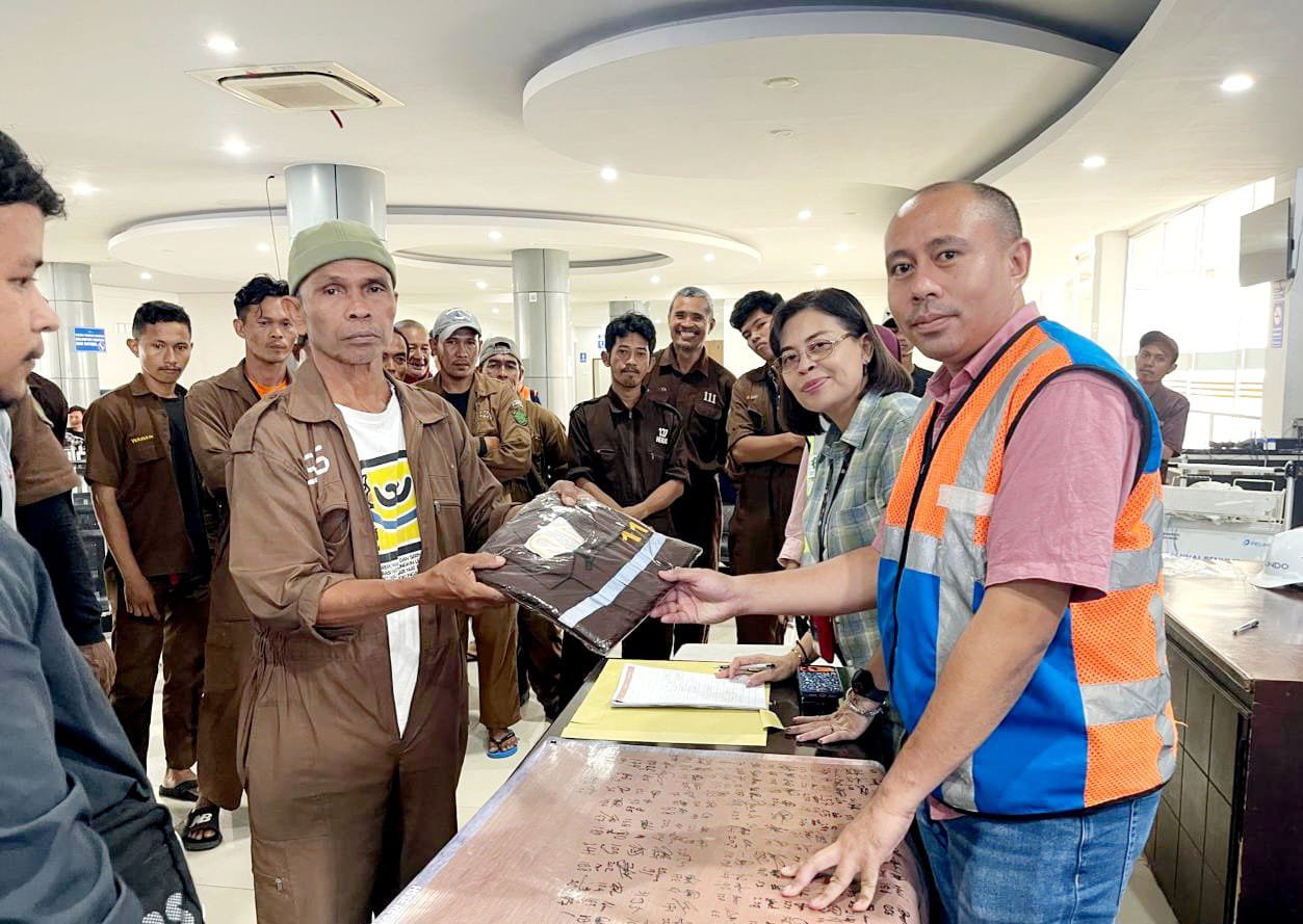 Dalam kesempatan tersebut, para peserta juga mendapatkan pembagian wearpack dan paket sembako kepada sekitar 600 buruh bagasi.