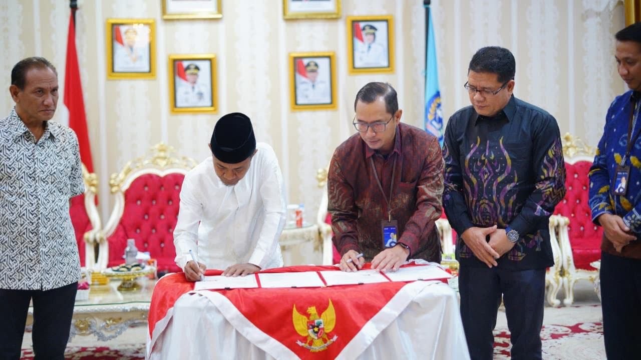 Bupati Bone, Andi Asman Sulaiman, melakukan penandatanganan kerjasama dengan Kepala Divisi Sekretaris Perusahaan (Corporate Secretary) PT Askrindo, Syafruddin.