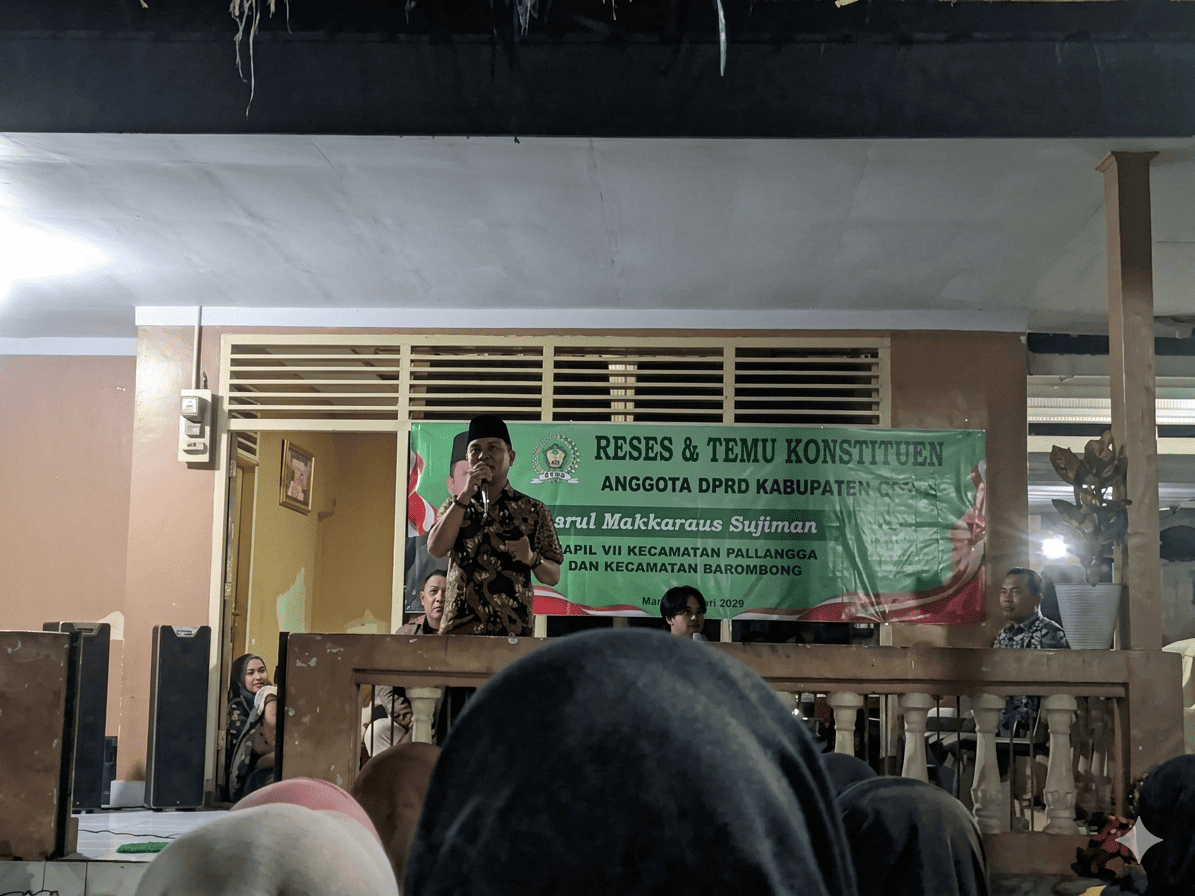 SUNGGUMINASA — Anggota DPRD Kabupaten Gowa dari Fraksi PPP, Asrul Makkaraus Sujiman, menggelar kegiatan reses dan temu konstituen di Jalan Poros Pangka Binanga Tetebatu, Kecamatan Pallangga, Selasa (31/3/2026).