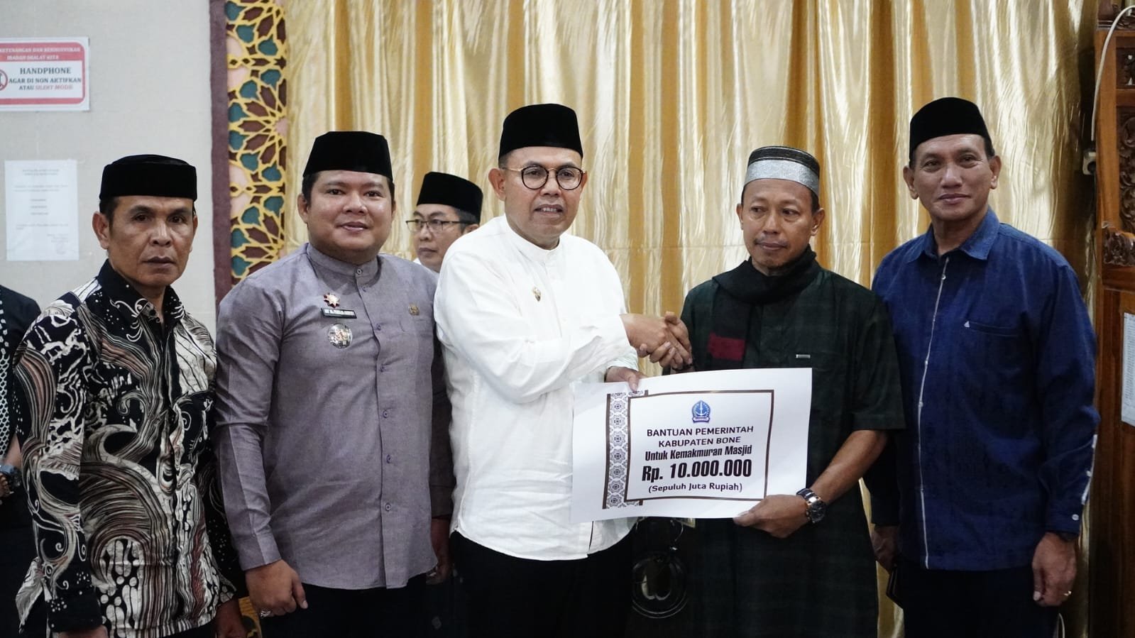 Selain itu, sebagai wujud kepedulian, Andi Akmal juga menyerahkan bantuan Pemkab Bone untuk kemakmuran masjid senilai Rp10 juta. Namun, ia langsung menginstruksikan agar bantuan tersebut dialokasikan untuk renovasi masjid yang setiap tahunnya menjadi tempat berkumpul calon jemaah haji wilayah Bone Barat.