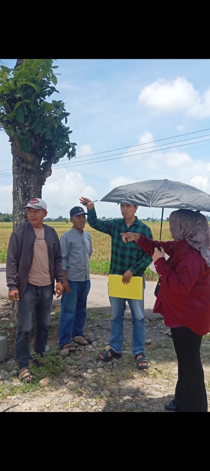 Bersama tim dari Dinas Pekerjaan Umum (PU) Kabupaten Gowa, Hj. Wardhana melakukan survei lokasi pembangunan jalan paving di Dusun Minasate’ne, Desa Borimatangkassa.